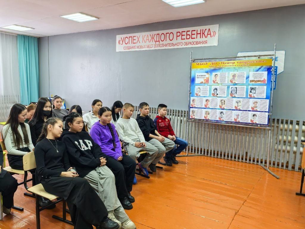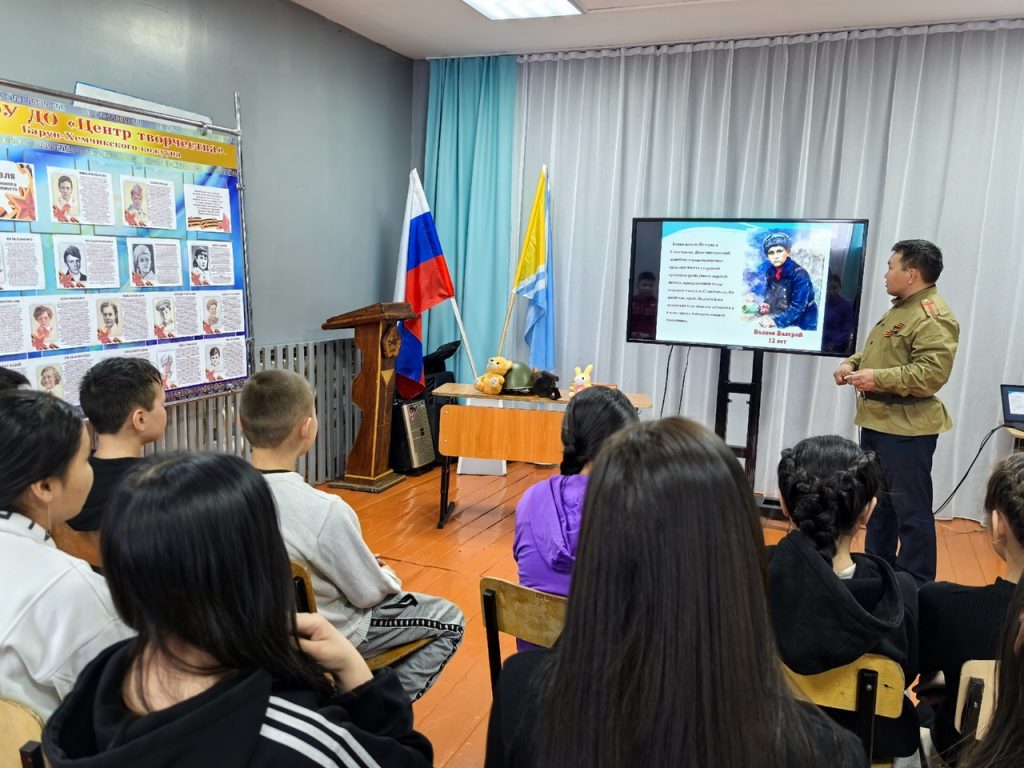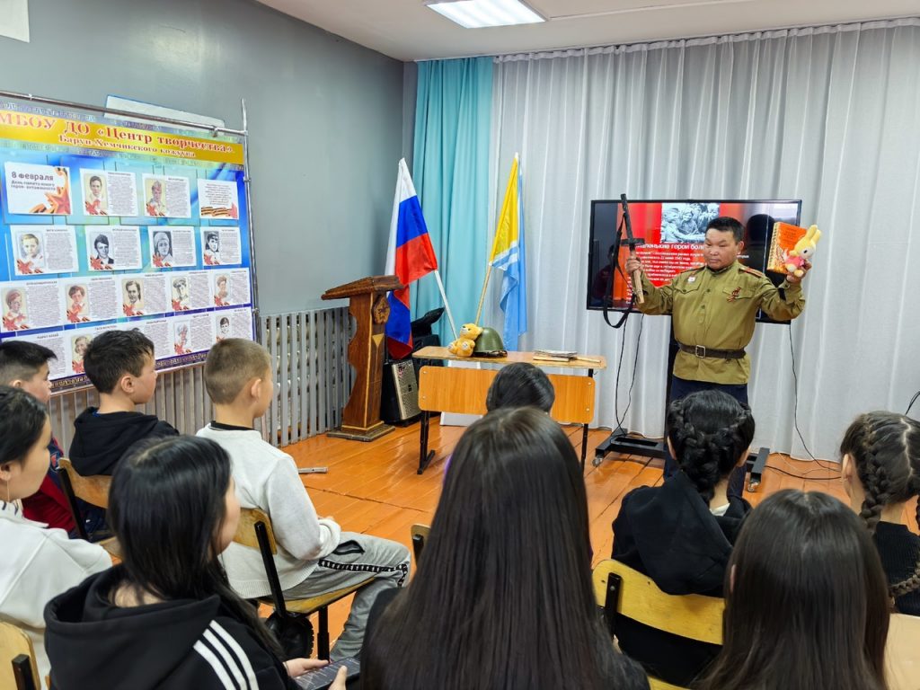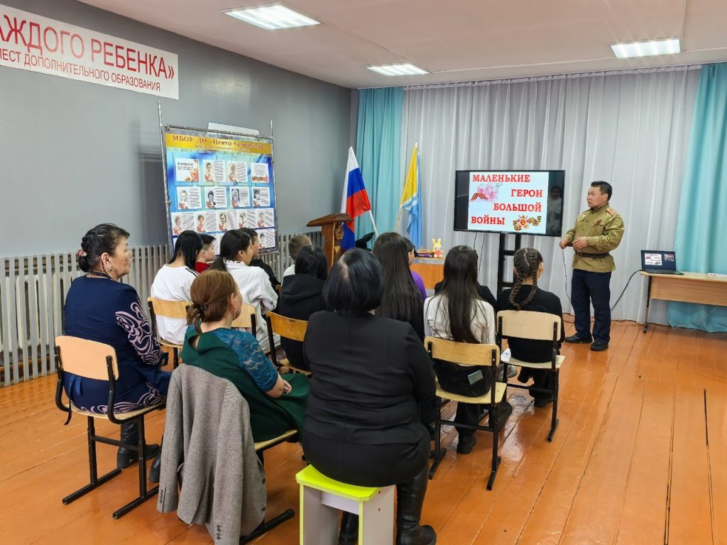 Ооржак Омак Шойдар-оолович, педагог-организатор Центра творчества, представил вдохновляющую презентацию под названием «Маленькие Герои Большой войны». В своем выступлении он рассказал о героических поступках детей во времена войны, акцентируя внимание на значимости сохранения памяти о подвиге юных героев. Его рассказ вызвал большой интерес у всех присутствующих и стал отличным началом для обсуждения темы акции.