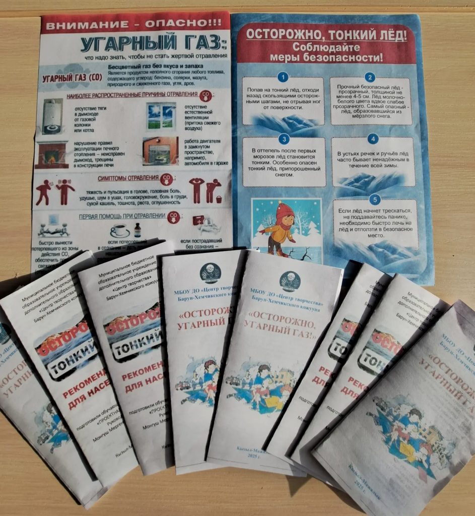 09.12.2025 г. педагогом объединения «Золотые ручки» Донгак Ч.Д. были проведены акции: «Осторожно, угарный газ!», «Тонкий лёд!» Акция «Тонкий лёд!» является важным инструментом профилактики несчастных случаев на водоемах в зимний период. Цели: — Повышение осведомленности детей и подростков о правилах безопасного поведения на льду.