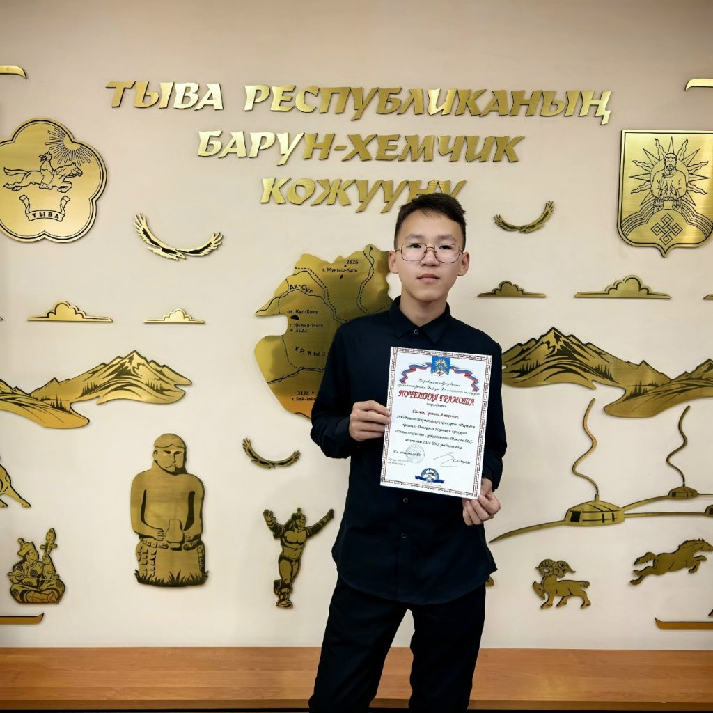 Обучаясь в нашем объединении и участвуя в конкурсах он удостоен заслуженной награды — ПОЧЕТНОЙ ГРАМОТОЙ Управления образования Барун-Хемчикского района.